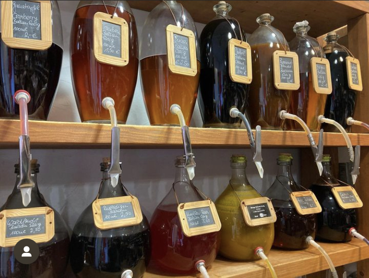 Manchmal benötigt man nur eine kleine Menge eines speziellen Essigs, den man als Zutat in einem Kochrezept gefunden hat und möchte nicht gern gleich eine große Flasche davon kaufen. Wir füllen Ihnen gerne die Menge ab, die Sie benötigen. Wir haben einfache Flaschen und Schmuckflaschen im Sortiment. Oder Sie bringen gleich Ihre eigene Flasche mit.